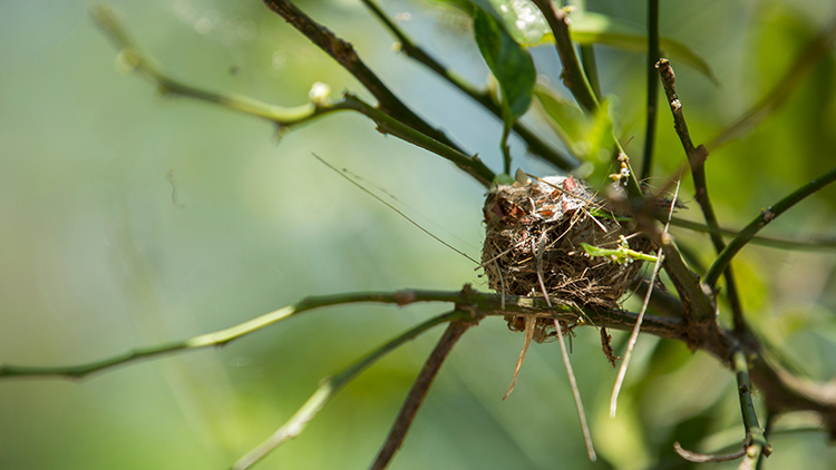Their nests are also small. They are about the size of a small paper cup. The female hummingbird lays two eggs. The eggs are about the size of a marble.