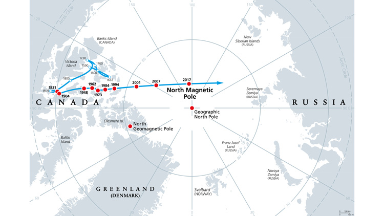 ¿Dónde está el polo norte? La respuesta puede parecer fácil. Primero, tenemos que hacernos otra pregunta: ¿Cuál polo norte? Así como lo oyes. ¡Existen dos polos norte! Uno es el polo norte geográfico. El otro es el polo norte magnético.